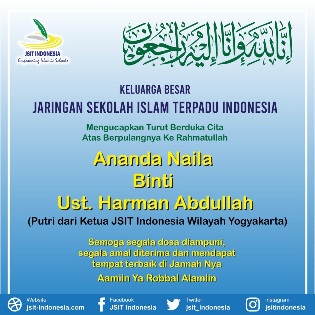 Jnnalillahi wa inailaihi roji’un. Jum’at 27 Desember 2019,pk 13.30 Nayla Adnin Miftahul Jannah binti Harman meninggalkan kita semua, untuk selamanya.