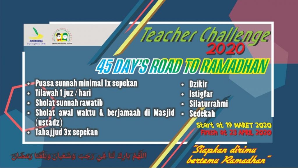 “Kita harus mengajak semua kalangan untuk bertekad mengisi waktu-waktunya untuk meningkatkan ibadah menuju bulan yang penuh berkah di tahun ini, sehingga Ramadhan kali ini benar-benar menjadi wujud kecintaan kita kepada Ilahi. Dan challange ini kita mulai hari kamis (19/03) sehingga kita sebut challange 45 days to Ramadhan. Semoga diberikan keistiqomahan. “ tegasnya.