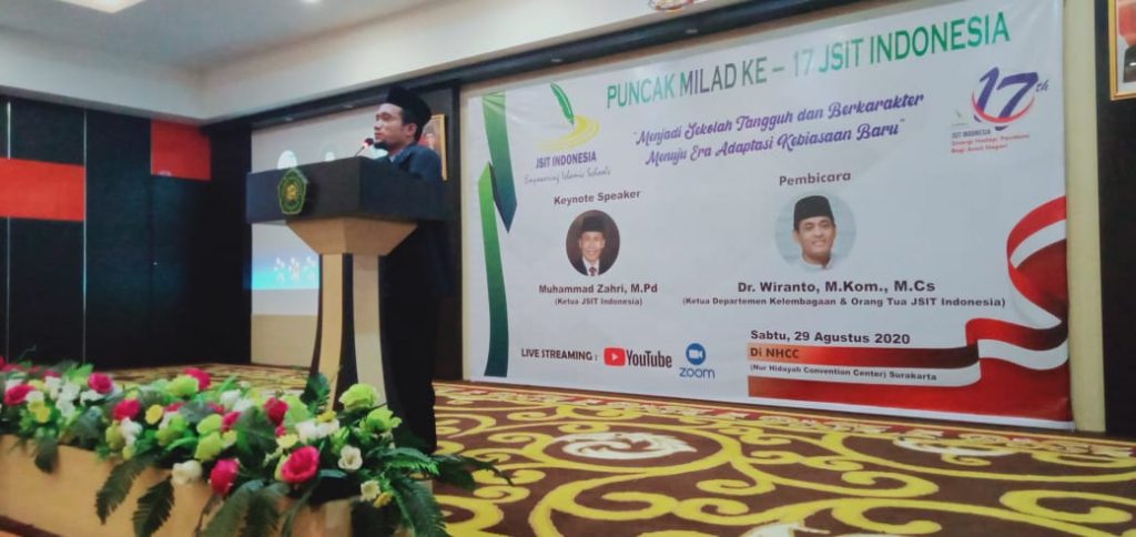 Surakarta (29/08) — JSIT Indonesia Wilayah Jawa Tengah menggelar kegiatan Puncak Milad JSIT Indonesia ke-17 di NHCC Surakarta. Kegiatan ini hanya diikuti oleh puluhan kepala sekolah secara offline dan ratusan kepala sekolah SIT secara online.