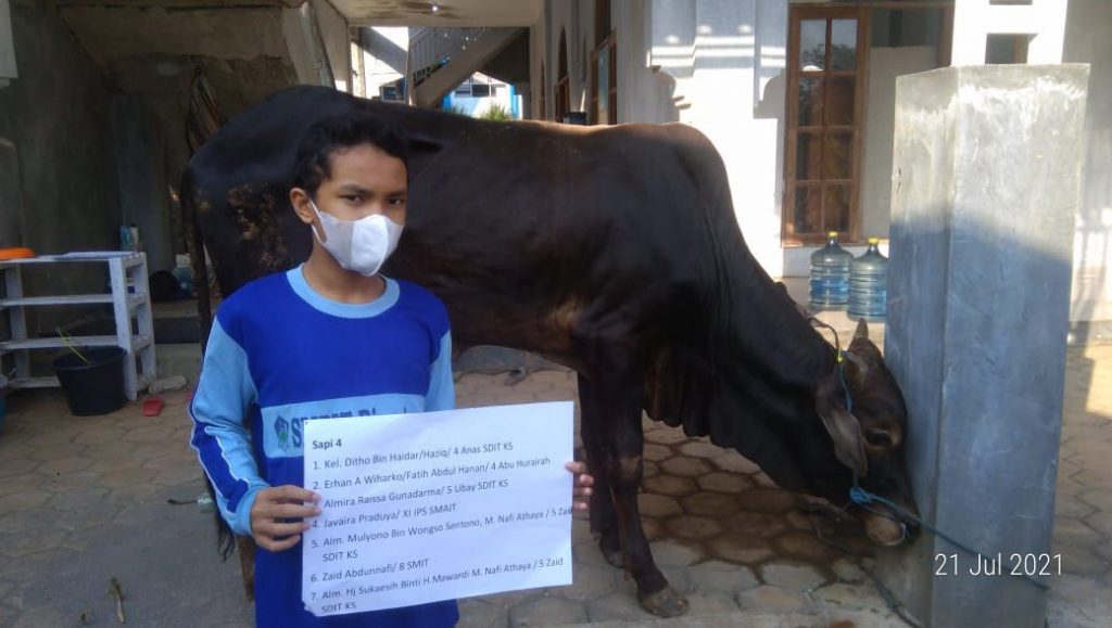 Salah satu siswa yang ikut berkurban Zaid kelas 9 SMP juga senang dan bersyukur di beri kenikamatan bisa berkurban ditengah pandemi. Semoga bisa menambah ketakwaan dan bisa bermanfaat bagi yang lain.