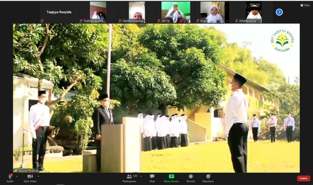 Solo (19/08) — SDIT Taqiyya Rosyida melakukan upacara bendera secara hybrid yang diikuti oleh seluruh masyarakat sekolah termasuk didalamnya guru, kariyawan dan seluruh siswa siswi SDIT Taqiyya Rosyida.