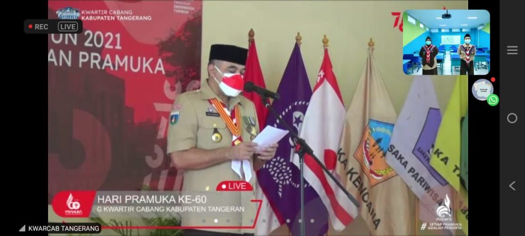 Curug (08/09) — Kwartir Cabang Gerakan Pramuka Kabupaten Tangerang gelar Upacara Peringatan Hari Pramuka ke-60 secara sederhana dengan protokol Covid-19. Kegiatan ini dilaksanakan pada hari Kamis, 26 Agustus 2021 di Gedung Serba Guna Kitri Bakti Curug dengan peserta terbatas dan diikuti oleh seluruh Kwartir Ranting se-Kabupaten Tangerang secara virtual.