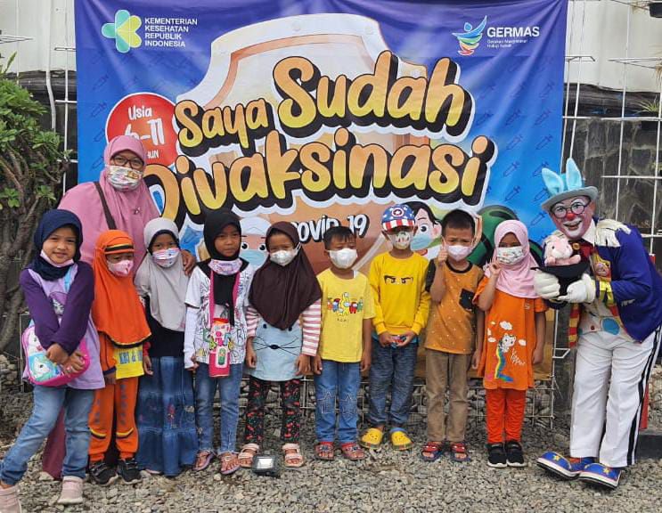 Vaksinasi dilakukan untuk anak usia 6 – 11 tahun. Jarak imunisasi/ vaksin dasar dengan vaksin Covid-19 adalah rentang waktu 1 bulan. Pada saat screening diharapkan lebih teliti terutama riwayat vaksin/ imunisasi sebelumnya.