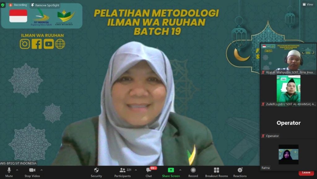 Depok (23/02) — BP2Q-SIT Indonesia mengadakan pelatihan metodologi belajar Al Qur’an ‘Ilman Wa Ruuhan yang pada bulan ini sudah sampai batch 19 dengan diikuti oleh 200 peserta dari seluruh provinsi yang hadir secara online.