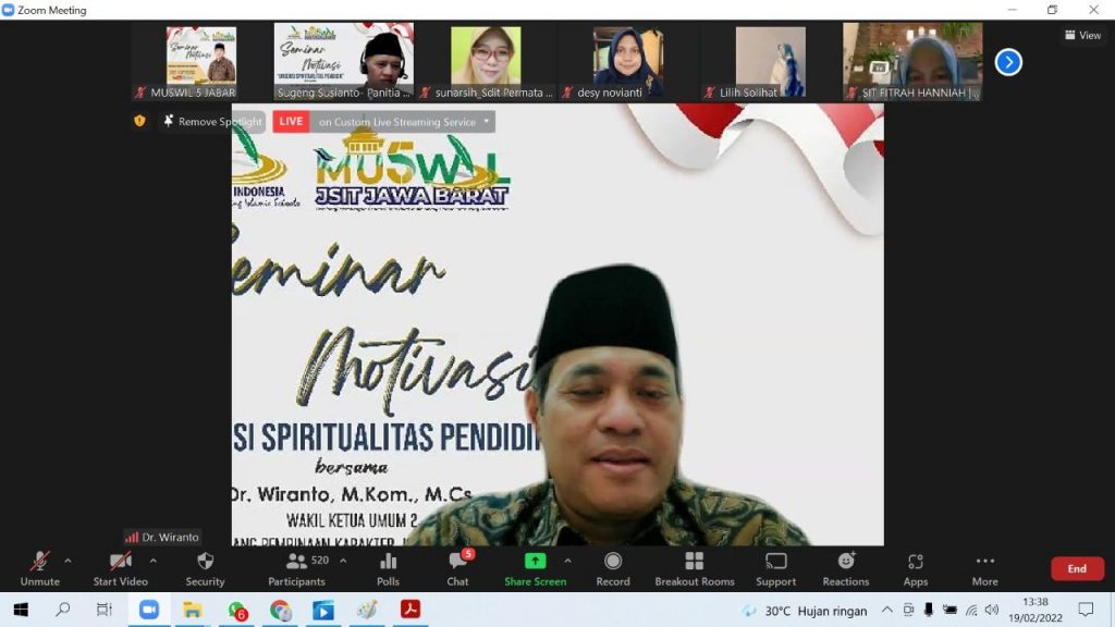 Seminar ini dihadiri oleh pengurus JSIT Jawa Barat, pendidik dari berbagai daerah dengan toal 500 peserta melalui zoom meeting dan sampai hari ini ada 724 yang menyimak melalui channel YouTube JSIT Indonesia – Wilayah Jawa Barat.