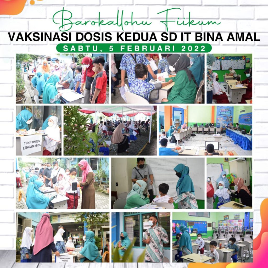 Semarang (07/02) — Vaksinasi dosis kedua untuk siswa SD Islam Terpadu Bina Amal diikuti oleh 427 anak usia 6-11 tahun pada Sabtu, (05/02/2022) di sekolah.