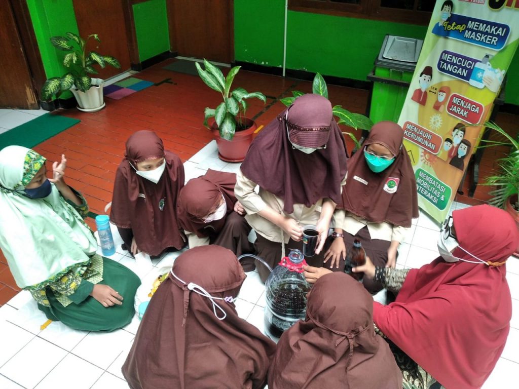 “Membuat sabun menggunakan eco-enzym ini kita kaitkan dengan Kompetensi Dasar tema 6, 7, dan 8 di kelas V yaitu tentang interaksi manusia dengan alam, perekonomian masyarakat, dan bentuk tanggung jawab manusia agar bumi tetap lestari,” ujarnya.