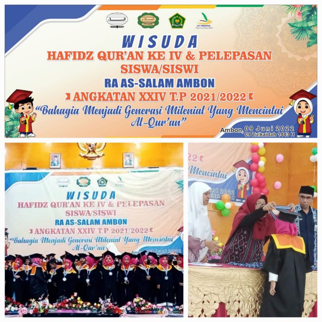 RA As Salam Ambon pada tahun ajaran 2021/2022 luluskan 80 Siswa, 25 diantaranya tuntas 1 juz (Juz 30). Hal ini sangat membanggakan para orang tua yang anaknya dapat menuntaskan hafalan Juz 30, Mengingat dua tahun terakhir jadwal pembelajaran selalu berubah – ubah dari online ke offline.
