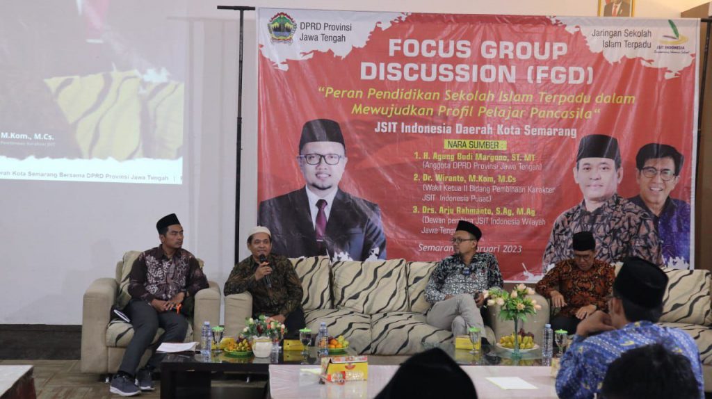 Bertempat di Gedung Penerbit Erlangga, Focuse Group Discussion dilaksanakan hari ini dari pagi hingga siang hari. Acara ini menghadirkan Agung Budi Margono (Anggota DPRD Provinsi Jawa Tengah), Wiranto (Wakil Ketua II Bid. Pembinaan Karkater JSIT Indonesia Pusat), Arju Rahmanto (Dewan Pembina JSIT Indonesia Wilayah Jawa Tengah) sebagai narasumber.