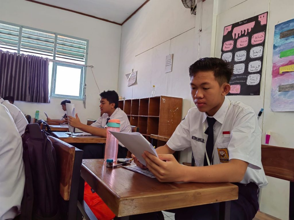 “Hari pertama PAT ini kita mulai dengan ujian mata pelajaran Bahasa Indonesia dan Pendidikan Agama Islam (PAI).” kayanya
