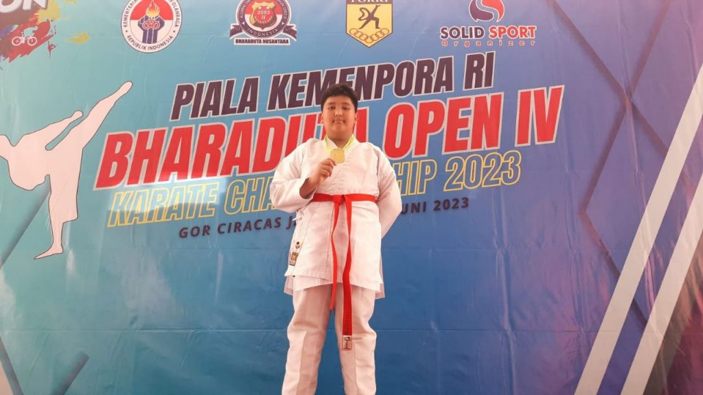 Bandar Lampung (12/06) — Siswa SMPIT Daarul ‘Ilmi Banda Lampung Muhammad Alden Safaraz mendapat Medali Emas Piala Kemenpora RI Bharaduta Open IV Karate Championship 2023.