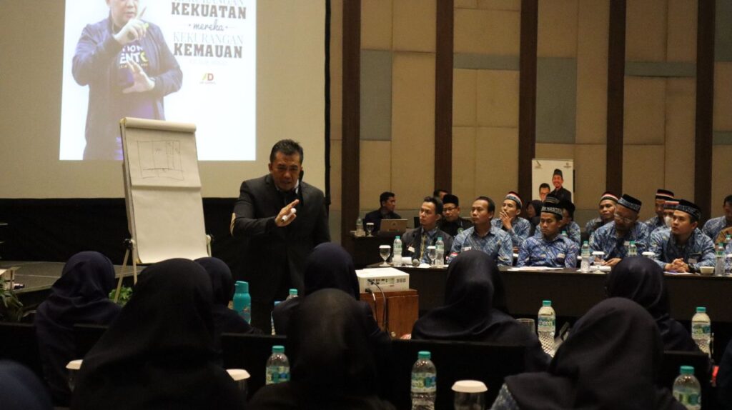Para peserta yang merupakan kepala sekolah dan lembaga pendidikan diberikan penguatan tentang kepemimpinan sehingga dapat diterapkan dengan baik di lembaga.