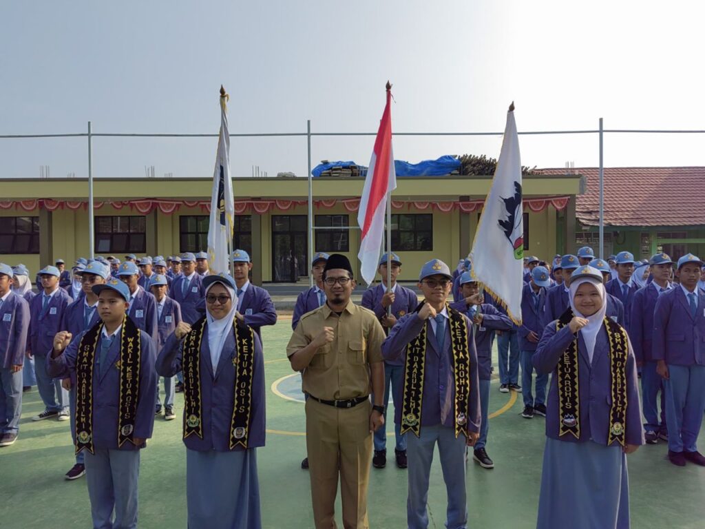 Penyerahan kepengurusan OSIS dan Rohis dilakukan secara simbolis dengan penyerahan bendera kelembagaan dari pengurus lama ke pengurus baru.