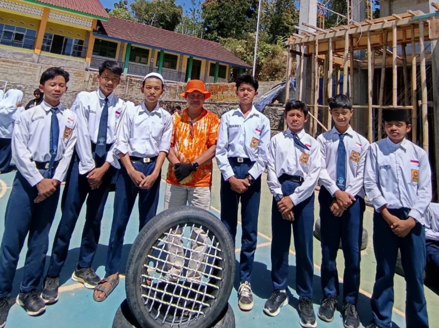 Dengan dipandu oleh Tenaga Pendamping Profesional (TPP) Kementerian Desa, Pembangunan Daerah Tertinggal, dan Transmigrasi Republik Indonesia, Budi Prasetyawan para siswa mampu mengubah ban mobil bekas menjadi 8 set kursi dan meja yang cantik.