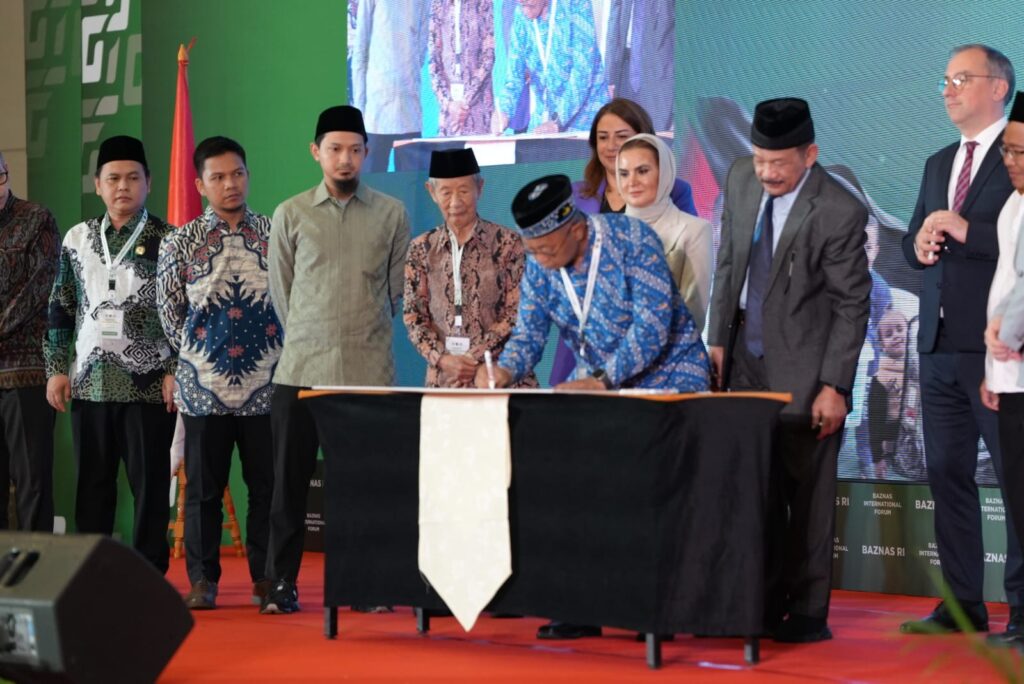 Ketua Umum JSIT Indonesia, Fahmi Zulkarnain, M.Pd., menandatangani kolaborasi internasional untuk mendukung solidaritas kemanusiaan bagi Palestina dalam perhelatan BAZNAS International Forum yang berlangsung di Jakarta, Selasa (19/11/2024). Acara ini dibuka oleh Menteri Agama (Menag) RI, Prof. Dr. Nasaruddin Umar, MA.