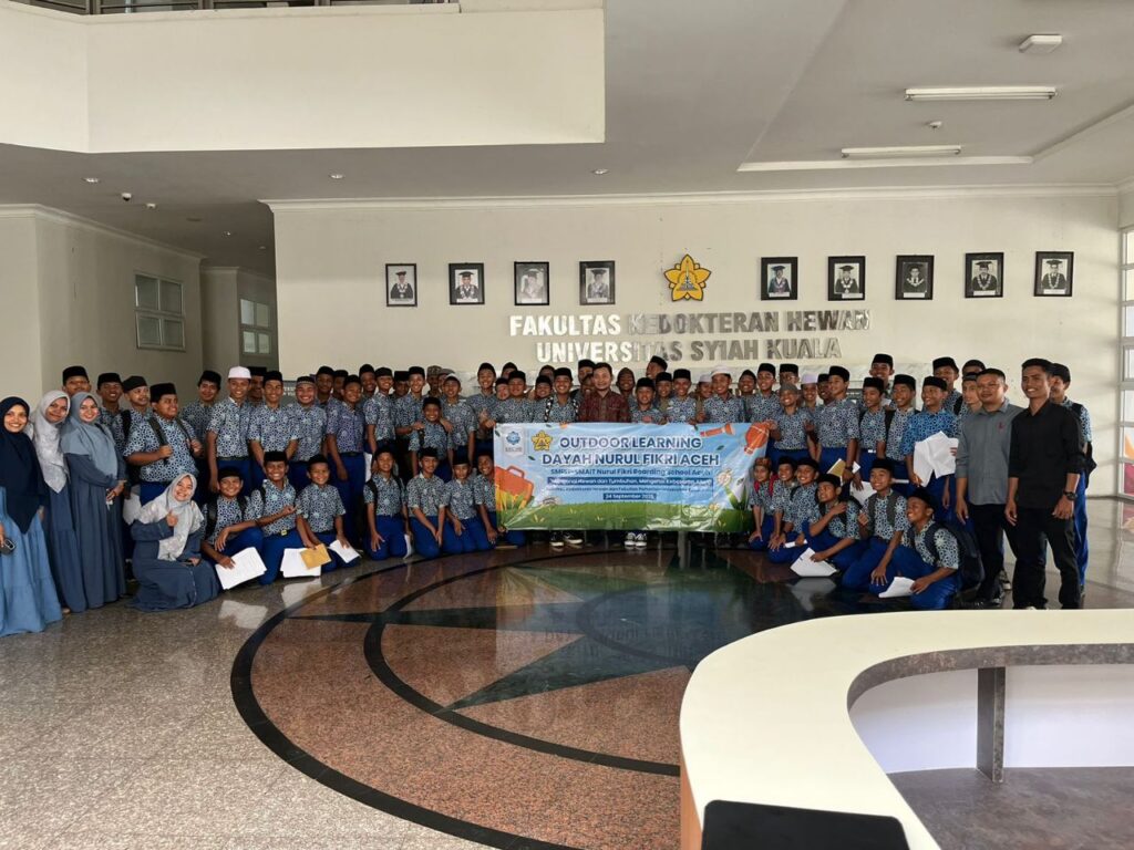 Banda Aceh (24/09) —- Santri SMPIT Nurul Fikri Boarding School Aceh mengikuti kegiatan outdoor learning di Fakultas Kedokteran Hewan (FKH) dan Fakultas Pertanian Universitas Syiah Kuala (USK), Banda Aceh.